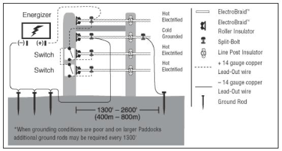Cut-Off switches can be installed to allow you to progressively turn on and off the bottom Standard Energizer Fence Wiring Diagram strands with the changing depth of snow. Wire your energizer as shown in the diagram.