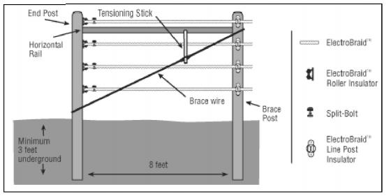 With ElectroBraid™ fence you are building the equivalent of a “boxing ring”. The corner and end posts must be strong enough to withstand the forces that would be transmitted if a horse were to strike the fence at speed.